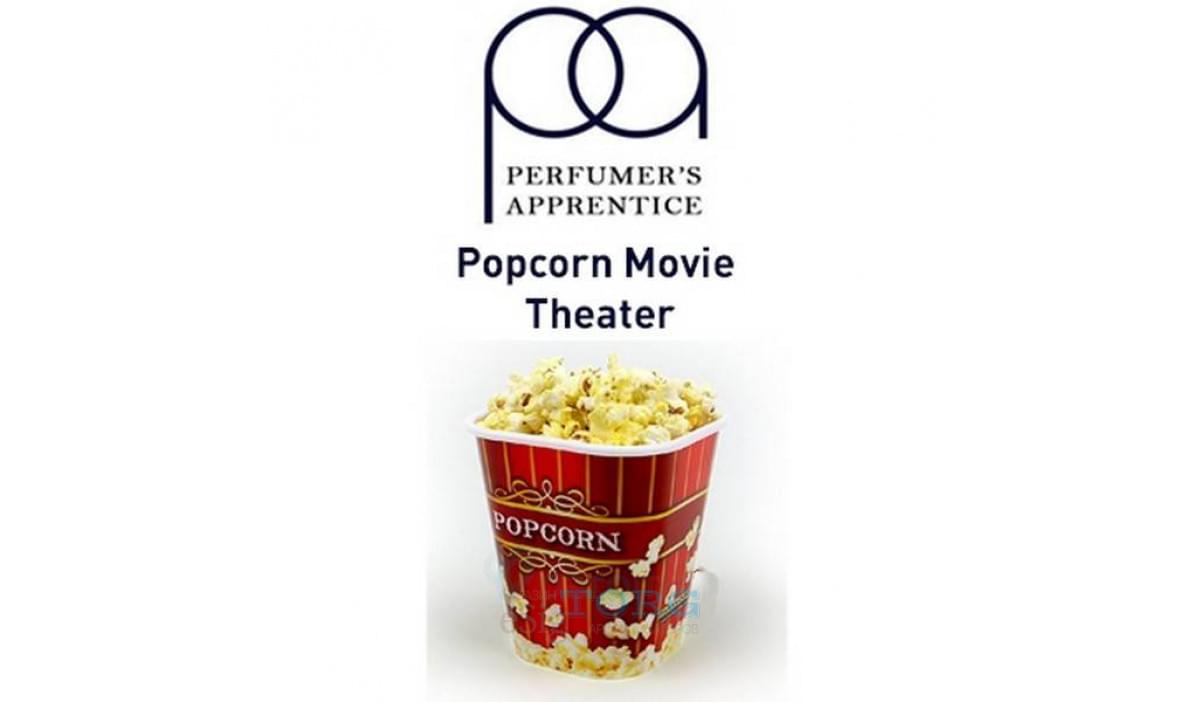 Арома, рекомендуемая для приятного, душевного просмотра фильмов — Popcorn Movie Theater. Запарив ее, вы почувствуете себя сидящим в кинотеатре перед большим экраном. А весь секрет — в удивительном вкусе горячего, только что из духовки попкорна, щедро сдобренного сливочным маслом. При смешиваяании Popcorn Movie Theater TPA рекомендуется соблюдать минимальную концентрацию — 1-3%.